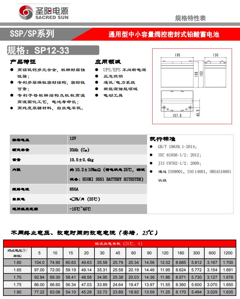 圣阳蓄电池SP12-33